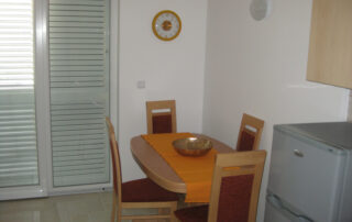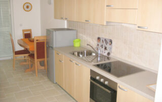 Kitchen and living room: The living room includes a large three-seat sofa convertible to a bed for two adults or children. A large wall-mounted 32” LCD full HD TV set is available for Croatian and Slovenian channels as well as for many international channels broadcast by satellite.