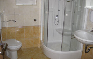 Bathroom: includes a shower, a wash basin with cabinet and mirror and a WC.
