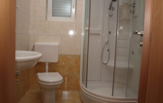 Bathroom: includes a shower, a wash basin with cabinet and mirror and a WC.
