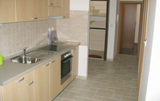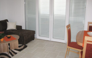 The apartment accommodating up to 4 + 2 persons on the extra bed is situated on the ground floor of the building B. It includes a corridor, bathroom, kitchen and living room with a balcony with access to the garden. This is a perfect apartment for families with small children, older persons and guest with reduced mobility.