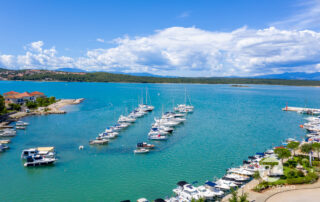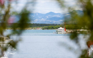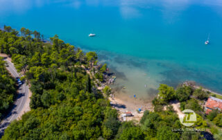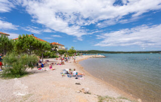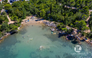 A pebble beach is located opposite the center. The beach is equipped with a shower, changing room, ramp for disabled person, volleyball net, playground, sandbox for the kids and a water-polo goal.  You can rent deck chairs, umbrellas and pedal boats. Besides this beach, in Klimno you can find several smaller beaches. At the entrance is „Komoriška“, a beach with fine sand. At the exit from the bay, there are two more beaches. One of which is gravel, while the other one has slightly larger stones. The nearest beach to us is “Škojić” which is located 50 m from our apartments.